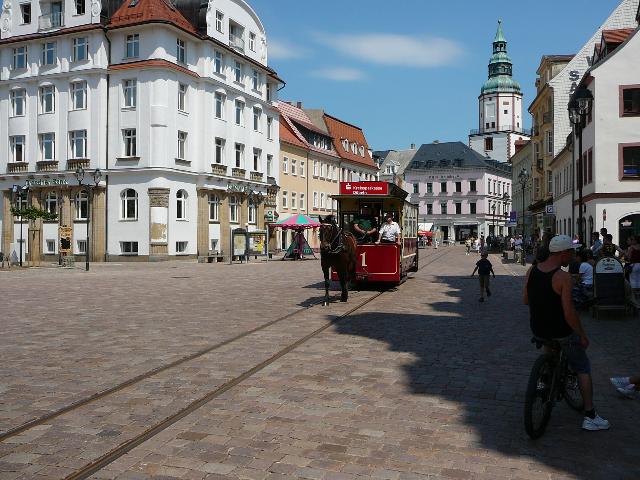 | | | Döbelner - Pferdestraßenbahn am 10.Juni 2007 auf dem Obermarkt ! | |